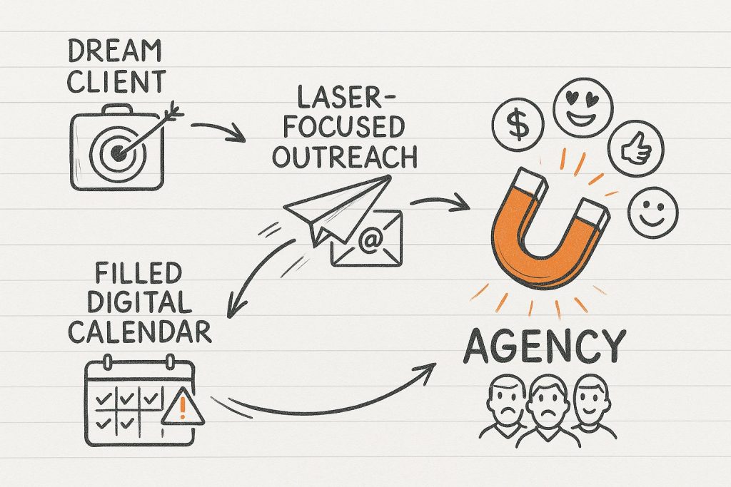 Ditch the “endless hustle”—get clients without ads, big networks, or spammy outreach. Plug in proven templates to fill your calendar with dream prospects every week. Position your agency so clients seek YOU out. Automate prospecting—leads are nurtured and booked while you focus on growth. Look pro with a magnetic brand and online presence. Consistent clients don’t require a big brand or huge ad spend